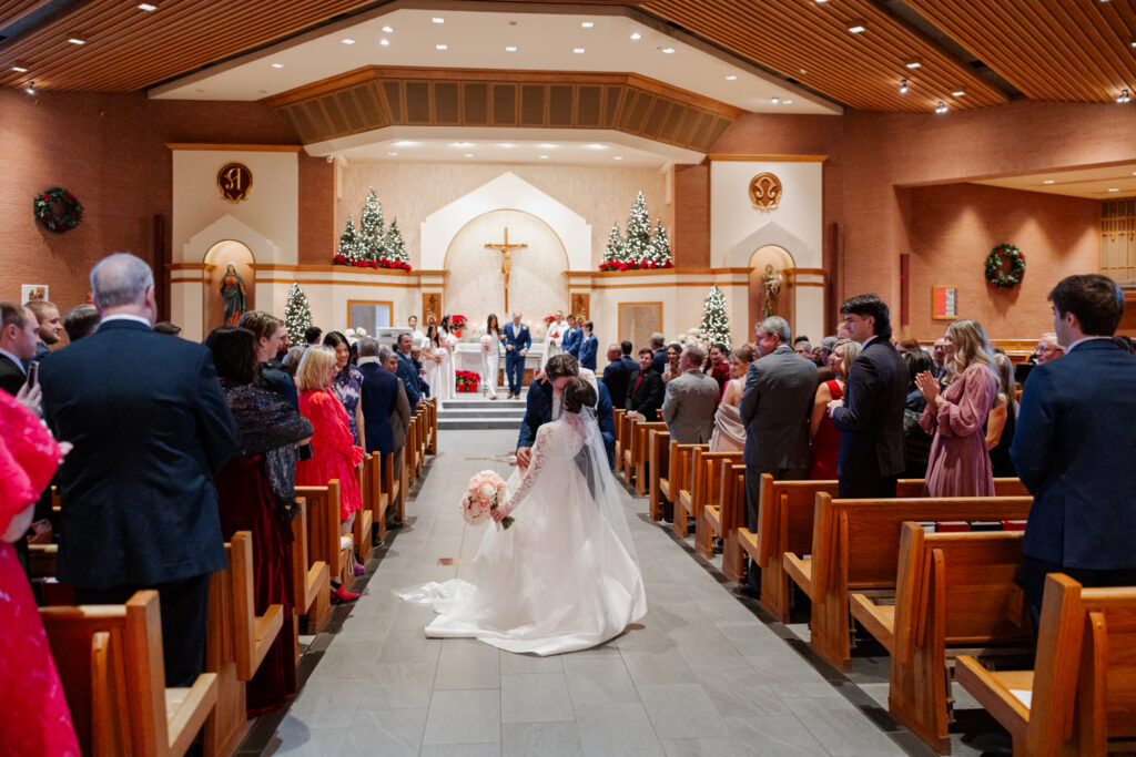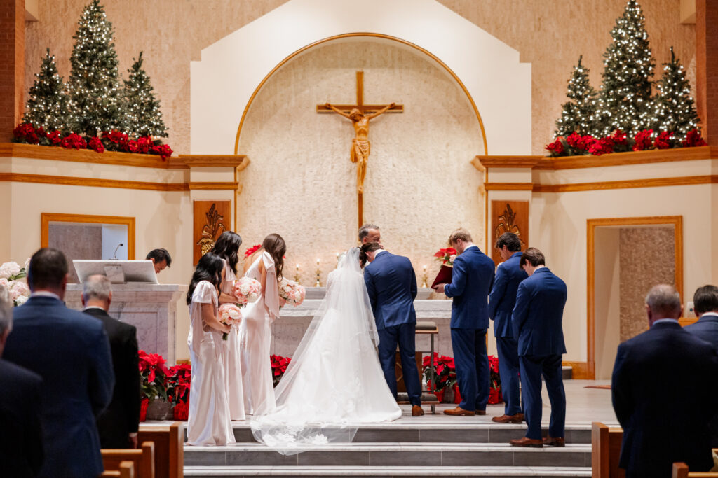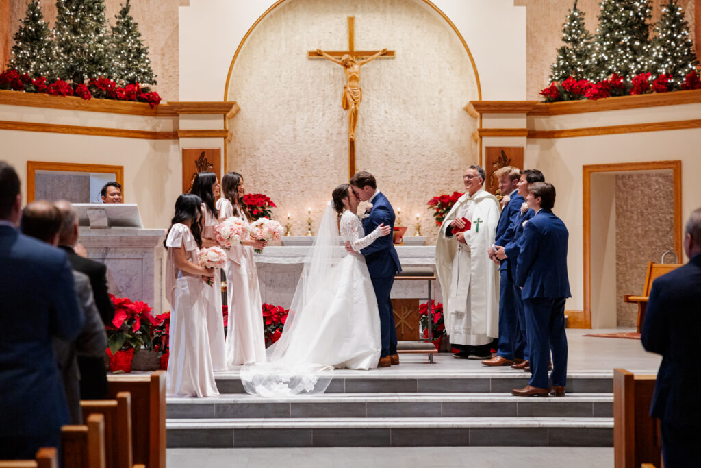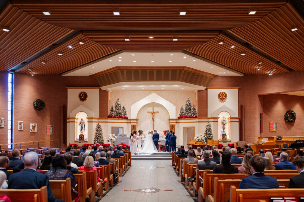 Their day began at Saint Mary’s Catholic Church in Tulsa, where they exchanged vows in a church meaning to them. Years before, both of their parents were married at the very same church, making their ceremony not just a beginning, but a continuation of legacy. The weight of that history, paired with the reverence of a Catholic ceremony, made the moment feel sacred and profoundly personal.